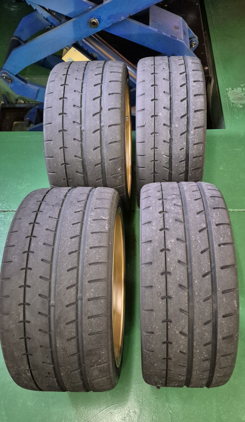 タカタを58秒0で走ったタイヤです。上2本が左側です、タカタでは傷みやすい方。でもほとんど違わないでしょ?