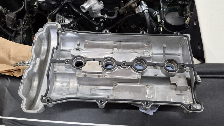 これはその昔、メーカーでリビルトエンジンがあった時のヘッドカバーです、未使用品。パッキンは最近購入の新品ね。おそらくウエットブラストで掃除してる。質感がそんな感じ。
