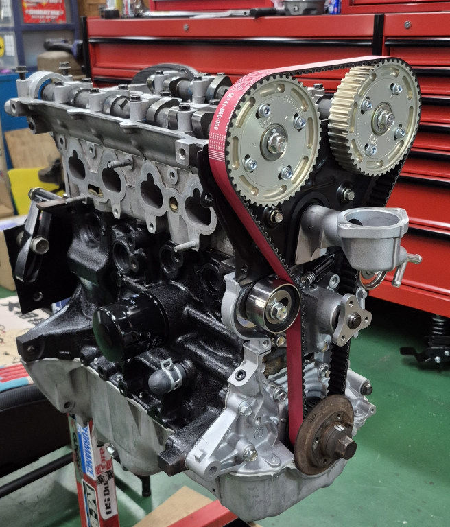 このエンジンは全塗装した「ポンコツ号」に搭載予定。フルオーバーホールのB6エンジンです。手間もカネも掛かってます!