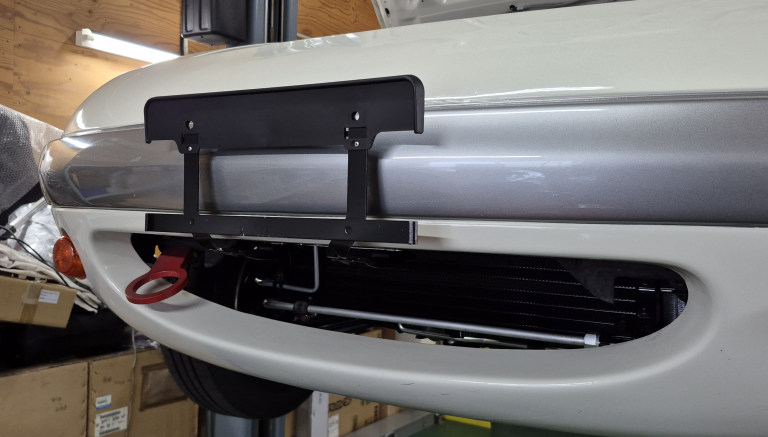 ナンバープレートホルダーは錆び錆びでしたのでNA6の純正を新調! まだ出るんですよ。ズーム製のもあるかもですがプレート位置が下がるんですよね。ラジエタに当たる空気が減るのでここは純正で決まりでしょう。
