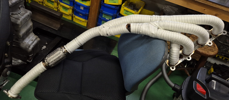 ヘッドカバーとエキマニを交換します。この姿は暫定でした。