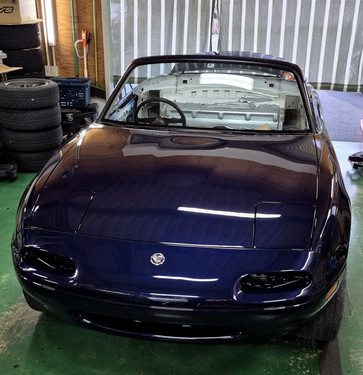 この色はM2-1002の純正色、ブレーブブルーです。NA6なのでNA6の色にしたかったんですよね。1001より青みが強い感じ。