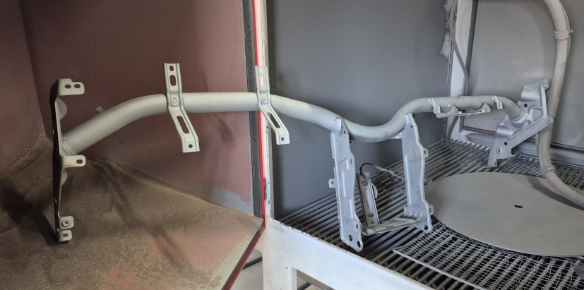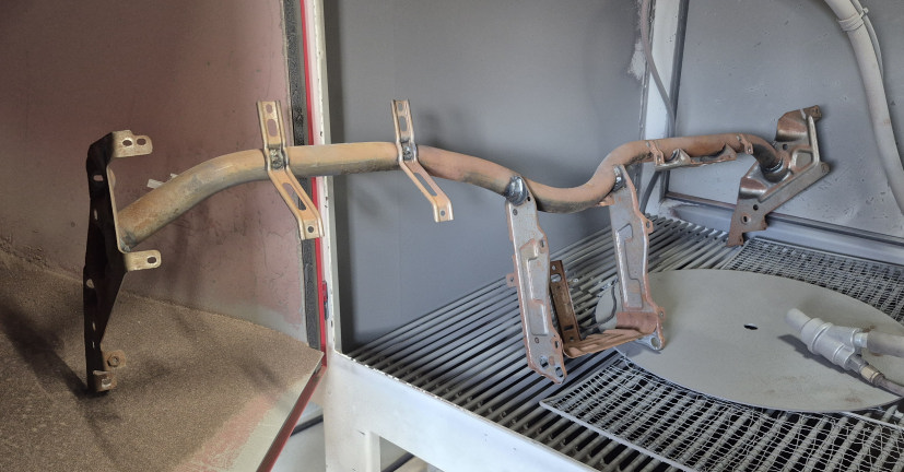 サンドブラストしたリアメンバーは塗装も済ませました。 見違えたでしょ!