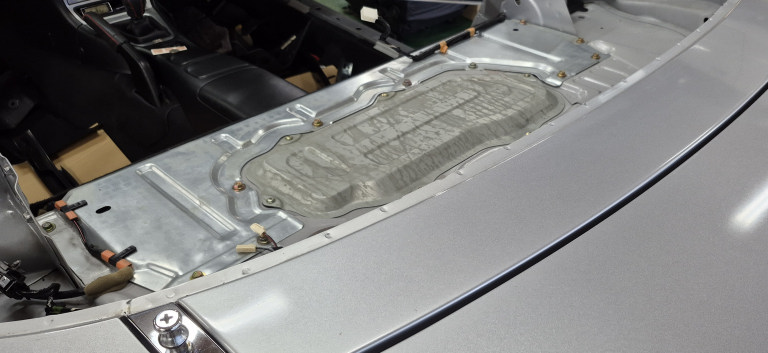 ガレージではNBの作業の続き、幌交換は終えて追加で「ホーン交換」作業。 NAならボンネット開けたらホーンは手に届く位置にあるのですが・・・NBは・・・