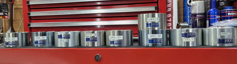 トダレーシングに特注したピストンスライダー。今回78.5と83.5でしたが・・・手持ちを並べてみたら83.5があった(笑) 減るもんじゃないしなぁ~ 交互に使う? いや、滅多に使わないんだけど~