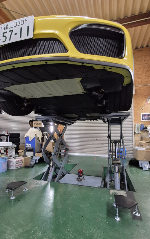 GTヨンの自家製アライメント調整は午前中に終わらせて午後は土曜日に預かったクルマの作業をスタート。