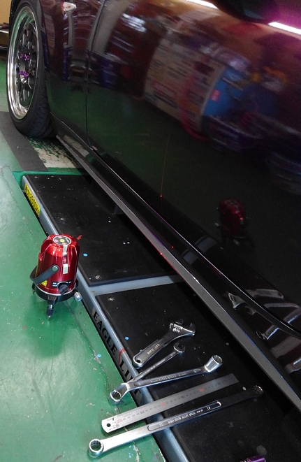 赤のNDは新規のお客さん、リア周りの作業をしてアライメント調整です。ここに来るのに初めて運転しましたが……