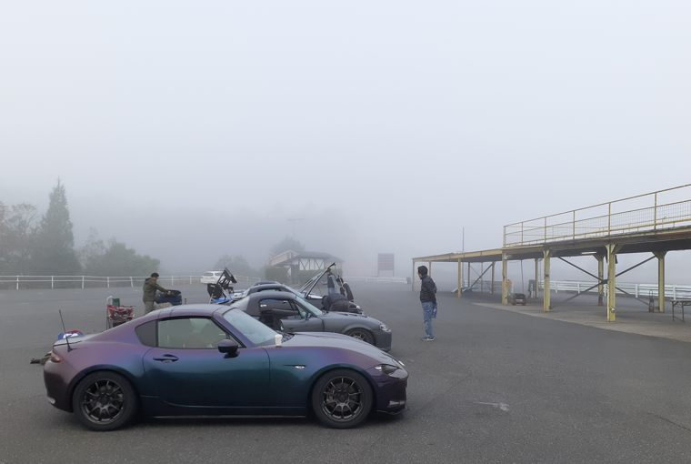 朝7時半、到着。この時期特有の霧ですね~ 路面はドライ、気温は10度以下かな?あさイチは狙えるコンディションかな~