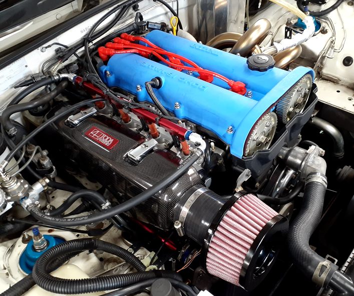 この車のエンジン仕様はいわゆるヘッドチューンです。1ミリ面研にトダ256カム、NBリフターです。純正ECUでも動きますが燃調が合わないところも出てきますので今まではトラストのサブコンを使用していました。