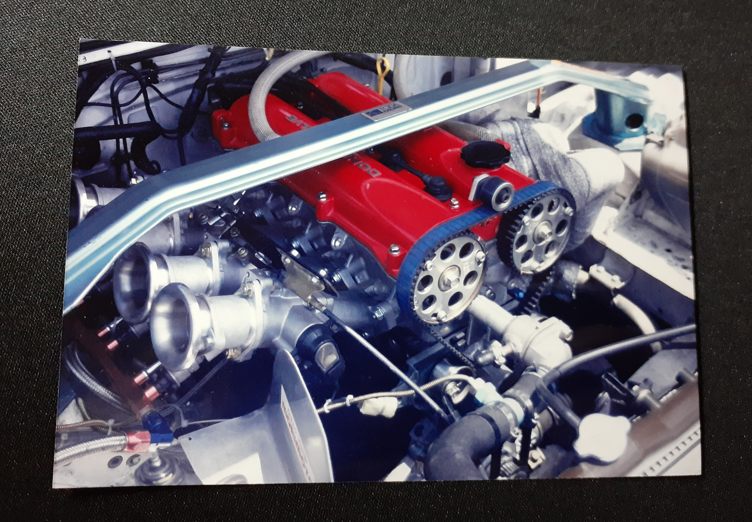 PCには入っていないのでプリントしているモノを探していたら……エンジンを写した写真が1枚だけありました。全日本ジムカーナの時だと思います、観戦しに行ったのは覚えているので。
