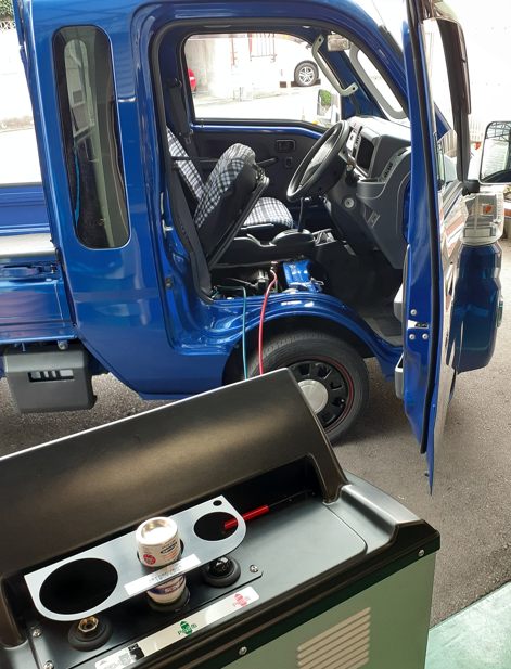 今日はオイル交換1台と隣のおっちゃんのクルマのエアコンガスメンテのみ。ついでに自分の軽トラのエアコンガスメンテもしてみました。
