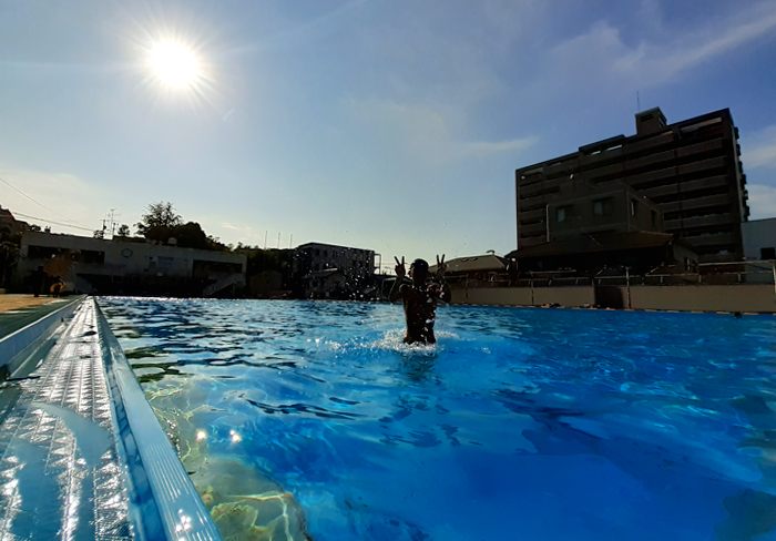 午後は今日が最後の営業日になる屋外プールへ。最後だから泳ごう!と思ったら……