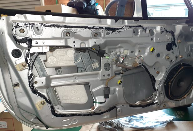 ドアの内側は塗り直ししていませんのでお掃除して組付け。最近、聞かれるんですよね、どうやってベトベトのブチルゴムを除去してるのかって。いやいや地味にじみ~に除去してるだけですよ、魔法のツールはありません。根気です(微笑)