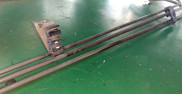 その一つが燃料とブレーキの配管。ボディ下を這っている奴ね。これは移植するよりこれを使おうかなと。ただ数年放置モノなので中で通行止めになっていないか確認を……