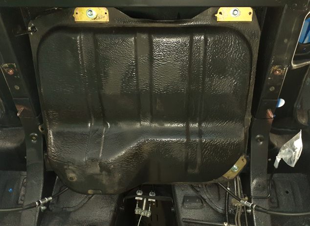 さて次は燃料タンクの装着ですが……MTジャッキにはリアメンバーが乗ってる、重くて降ろせない(苦笑) 燃料タンクは何とか持てる……中のガソリンは全部捨てたし……手持ちで行くか!
