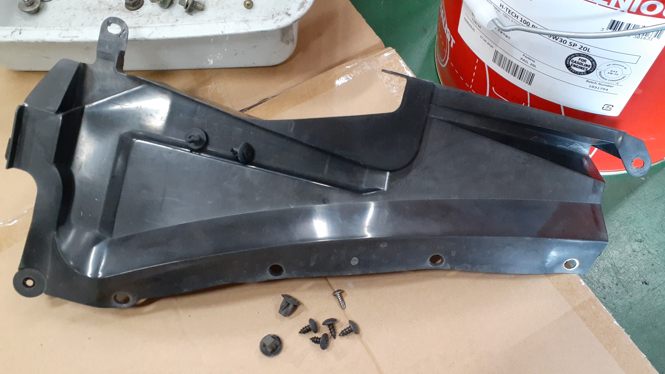 ここは助手席側の前方、外気導入口のカバーがあるところ。ネジを受けるグロメットを外しています。新調したかったですが廃盤……20年以上使われてきたモノを取り外す……のが地味に大変なんです!外すことは考えていないはずなので。