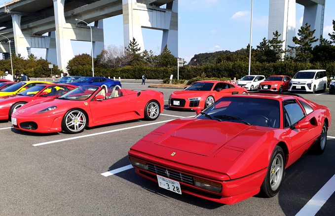 ふと「確か毎年正月にスーパーカーミーティングがあった気が」と思い出しググる。瀬戸大橋の途中の島、与島のPAであるらしく……唯一フェラーリに乗ってる知り合いに様子を聞いて見る。特に誰か主催者がいるわけでもなく昼前後に集まって適当に解散……そんなノリらしい。じゃ、行ってみようか~と言う事で長男坊と2日連続でドライブ。