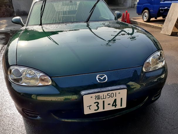 2015年にウチの代車号だったNBです、今は別のオーナーさんが所有中。私が施工したレーシングストライプのラッピング、画像ではわかりにくいですがシミも酷いので剥がしましょうということで……(剥がす作業はサービスです、私が貼ったので)
