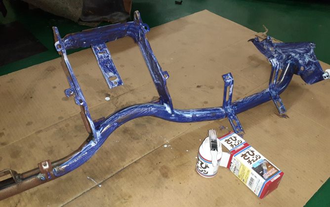 その上にさらに防錆塗装を。水に濡れる場所じゃないけどね。しかもオーナーさんはまず目にすることが無い場所です。でも見えないところも綺麗だと思うと気分は悪く無いよね?