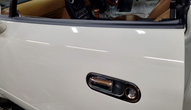 「ここまで良くなるんですね~」とのこと。このオーナーさんは新車ワンオーナーの1028乗りです。「28はオープンにしてもボディがしっかりしているけどロールバーがねぇ~」という意味は開放感。青号のように補強はほぼ無い(4点のロールバー)のにブルブルしないボディは……最高でしょう♪