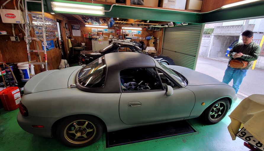 長らくNBに乗っていてウチでメンテを。RFの出物があって乗り換えたと。まだ2万キロ台のこのクルマ、足はもちろん生きてる。朝、助手席に乗ってきたガンちゃんのNDは「なんか足がイマイチだなぁ」と感じていましたが確信しました、もう賞味期限は過ぎてるよ(笑) 10万キロ近かったっけ?