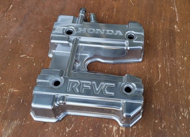 お客さんに頼まれたバイクのヘッドカバー、良い感じですね!