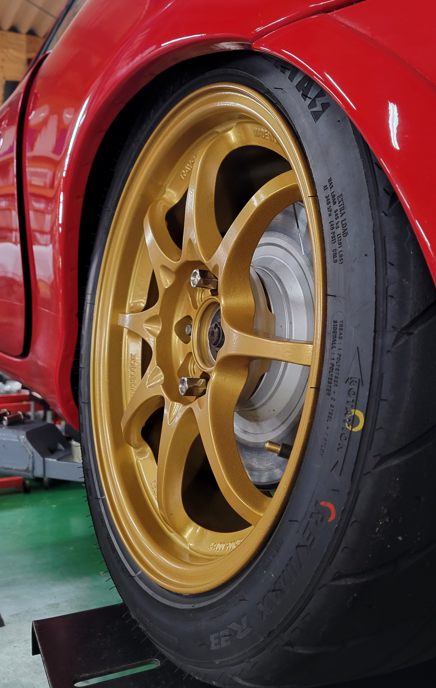 気負っていて忘れていました。今回はNBクーペ号で足回りを煮詰めてみようと思っていたんです。イメージはあるんですけどね、今までなかなか突き付めていなかったので。タカタサーキットで1番は取れませんがノーマルフェンダに収まるタイヤでどこまで速く走れるのか? そんなところをテーマにしてみようかなと。