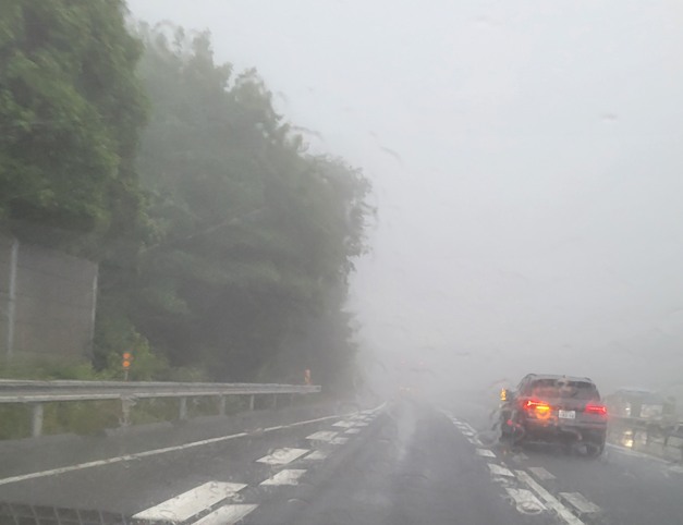 帰りも大雨、しかも濃霧……高速道路で視界100M以下って感じは恐怖ですな。みんな結構飛ばしてるけどさ……80キロでも怖いよ。今日は往復の運転が疲れました……