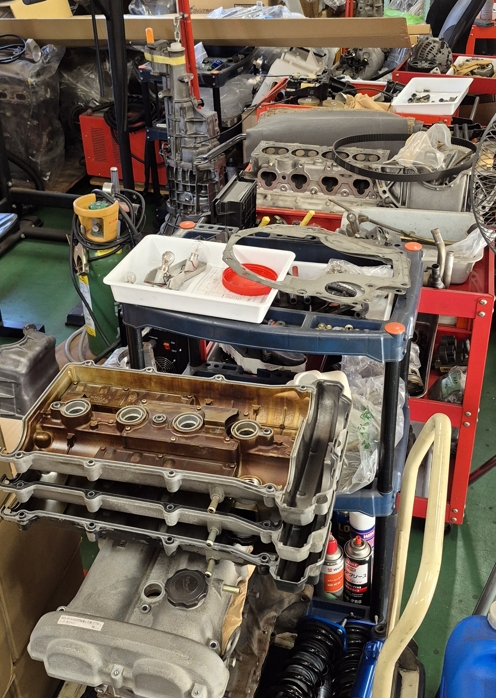 中古エンジンもいくつかありますが……10年とか未開封のモノもあり……バラシて保管したいのですがなかなか……錆が気になりますけどねぇ~ 理想のガレージの姿とはほど遠いのが現状です(笑)