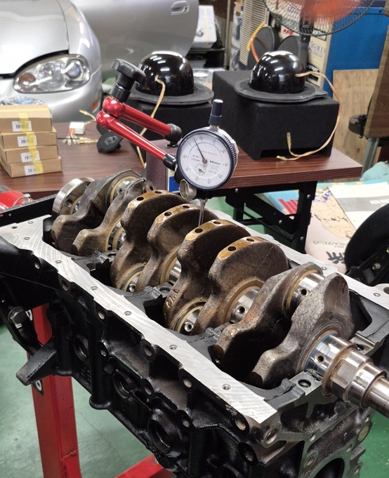 これはBPエンジンです、NA8向けに作ります。中古クランクですがほぼフレがありません、100分の1以下です、素晴らしい~