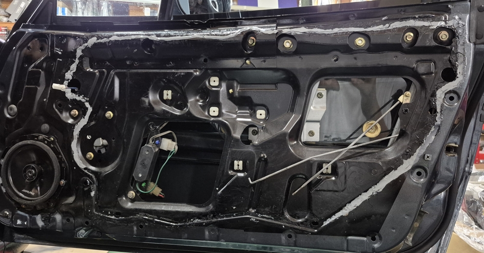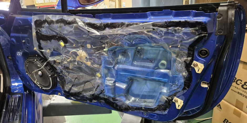 このクルマはドアメンテも行います……NBはなんでブチルが多いのか……NAに比べて確実に多いんです。