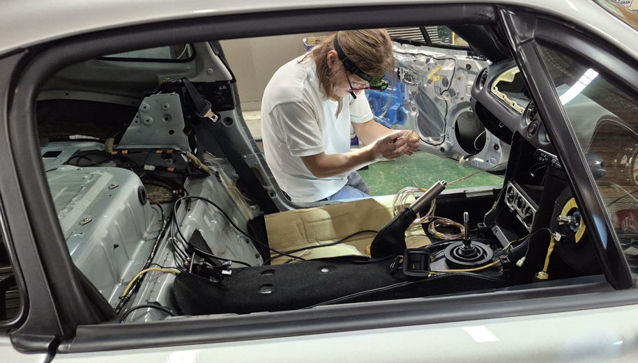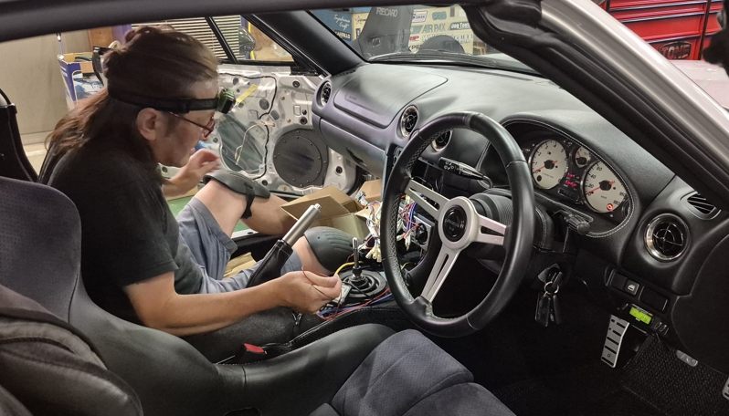 NBクーペにフルセットの取付です。私は事前にスピーカー線をドアに通しただけで残りの作業は全てヤマグチさんです。