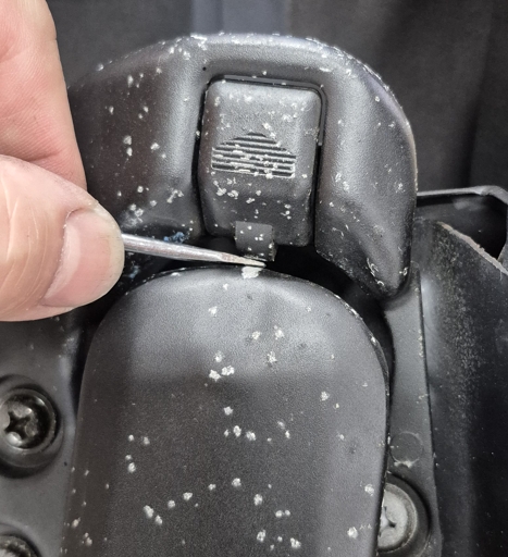 今回はこのキャッチも交換になります。ツメがすり減ってロックできません。小さなマイナスドライバーが隙間に入っているのがわかるかな? キャッチは左右で20080円です、税抜き。