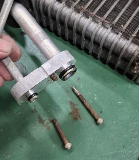 緩めながら嫌な予感……やっぱり折れた……錆まくりだし……マジか……M5で50ミリのキャップボルト……市販品で探そうか~ ボルトが届くまでは別のところの作業を進めよう……ま、こんなことは「よくある」んですよ。そしてこのボルトを在庫すると、そうすれば次に同じことが起きても待たなくて良いしね。