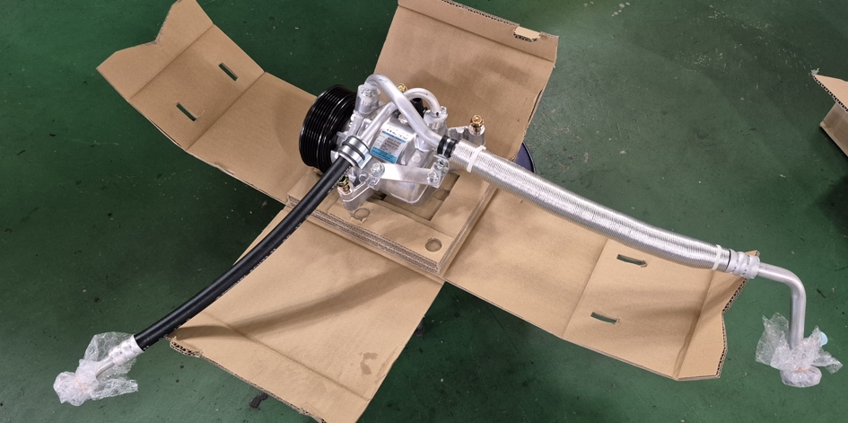 既存のエアコンパーツは全部撤去、フル新品、NDコンプレッサ仕様にします。