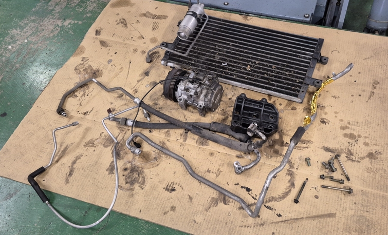 エアコンのコンデンサの組み立てとか。新品がキモチイイですね! 30数年経つのに新品が出るなんて有難い限り。リフレッシュすれば乗れなくなるまで乗れると思います(笑) 乗れなくなれば……誰かに引き継ぐことになると思いますがリフレッシュしていれば乗ってもらえるでしょう!