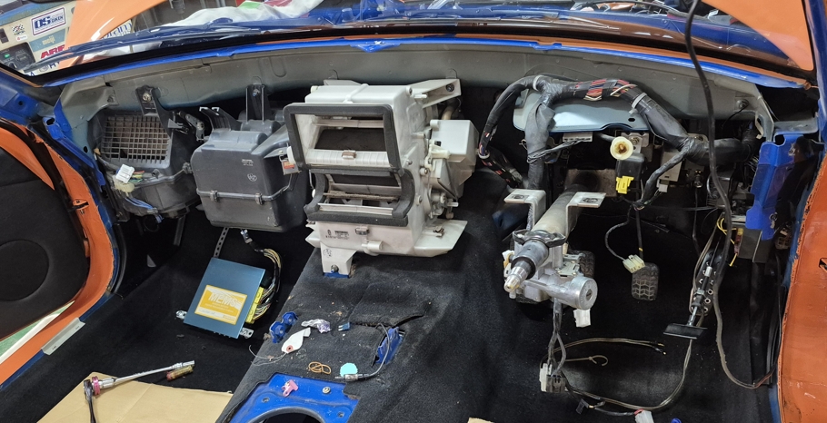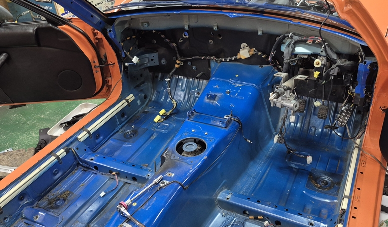 フロアマットも一旦外します、この先、ロールバー装着とかあるので取り外した方が作業しやすいかなと。