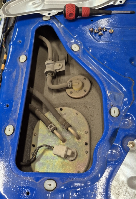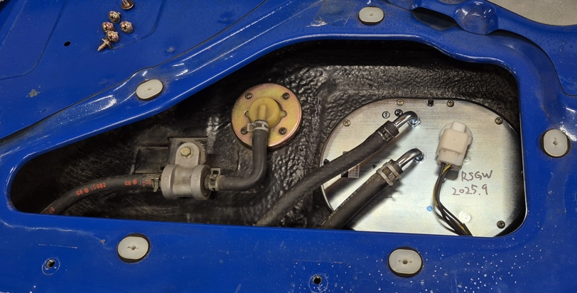 燃料タンクが無い時にしか出来ない燃料系のゴムホースの交換も。タンクをずらせば車載でも交換できるのか?でも、ずらすスペースが無いんですよね……リアメンバーとの隙間は指1本程度だし。やっぱりタンク降ろしですかね~ イヤスギル(苦笑)