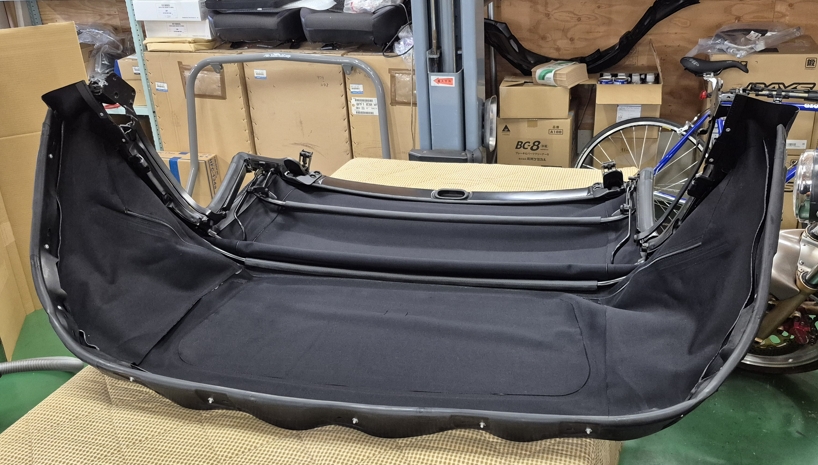 これは2015年製のNA幌です。レストア事業が始まって復刻幌が供給されたのが2018年から……つまり復刻前のオリジナル幌ってこと。