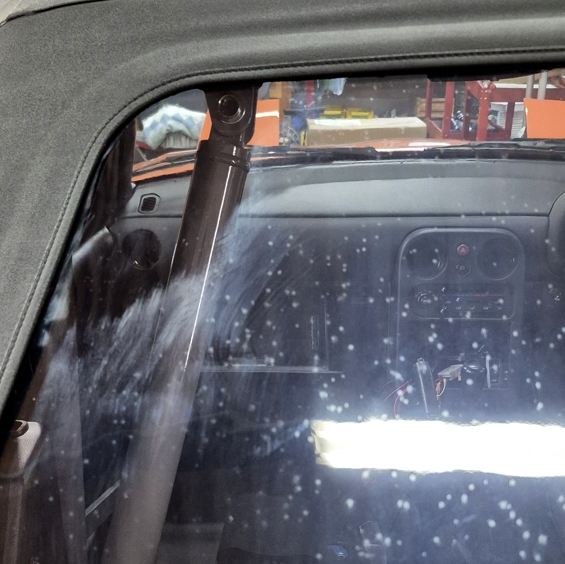 NAオリジナル幌、暗いんです(笑) リアのビニールを保護しているんですよ、最後にカットしますけどね。もうこの作業をすることは無いかもなぁ~