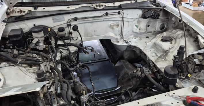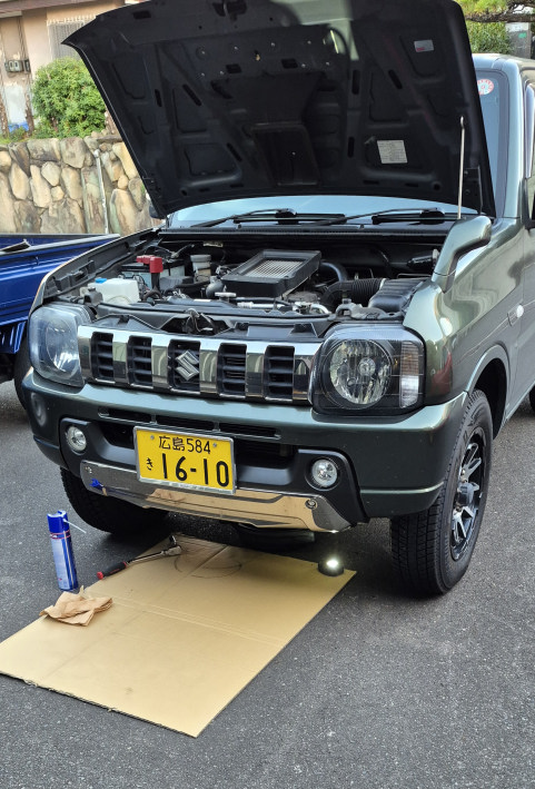 さてポンコツ号ですがエンジンルームも塗ってもらえる雰囲気を感じたので……なるべく部品を外します。