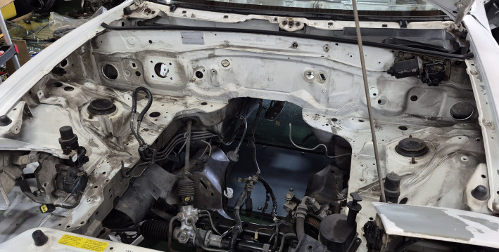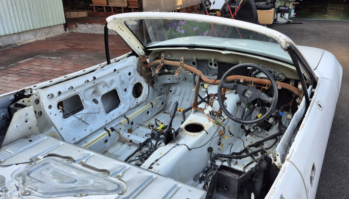 昼飯前になんとかここまで! この後、ワイパーモーターも撤去しました。