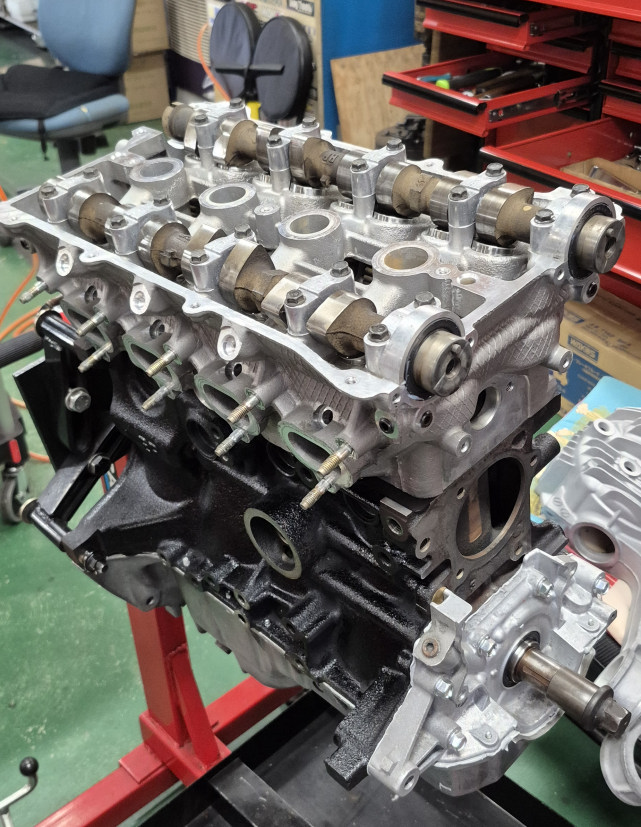 カムまで組みました。明日、タイミングベルト類が入荷するはずなので組み上がるかな?