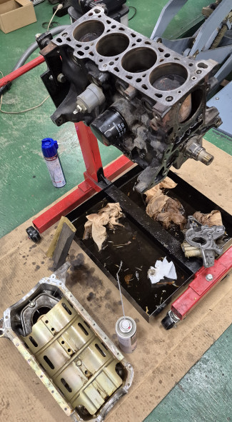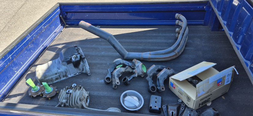 15時ぐらいに小山自動車さんのところに行ってNAを引き取って……早速作業開始。オーナーさんがバラした残骸を拾い集めて……ネジ類は全部ある模様(笑)