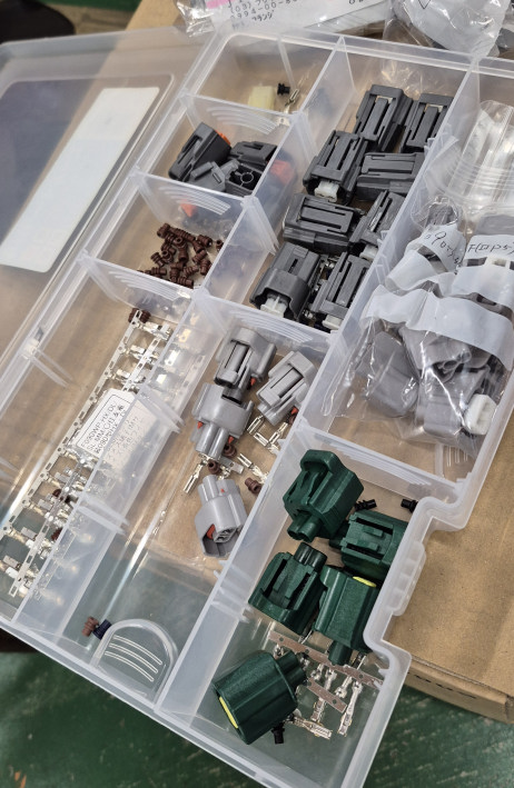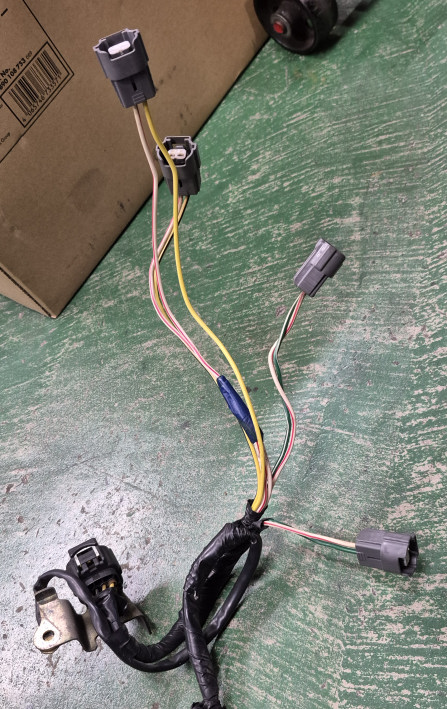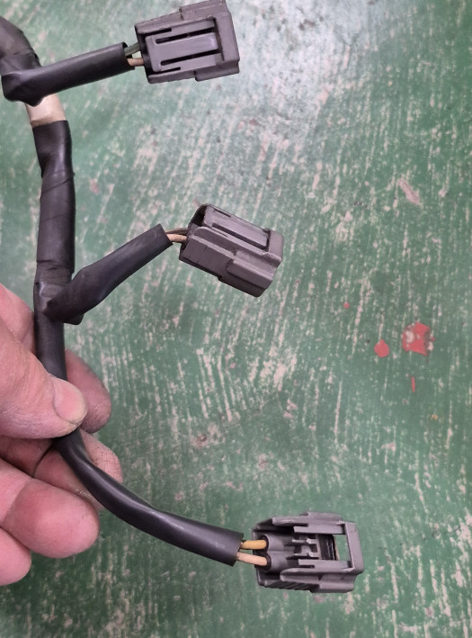 エンジンルームを塗ってもらうために……まずは助手席側のハーネスを車内に引き込みます。