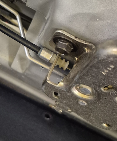 トランクが開きにくいと……仕組みは単純なのでキャッチに問題あるのかな?と見てみると……ワイヤーがきちんと掛かっていません(画像ではわかりにくいですがカチっとハマっていない、位置も違う。
