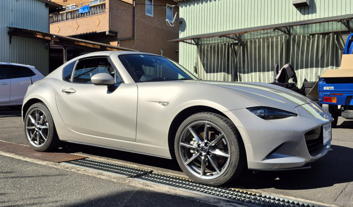 朝は不思議な色のRF、25歳の若者でした! ロードスターに乗るまでクルマに興味は無かったようですがRFを手に入れてMTの運転が楽しいと。ジムカーナに興味がありますとのこと。良いんじゃない!