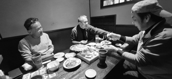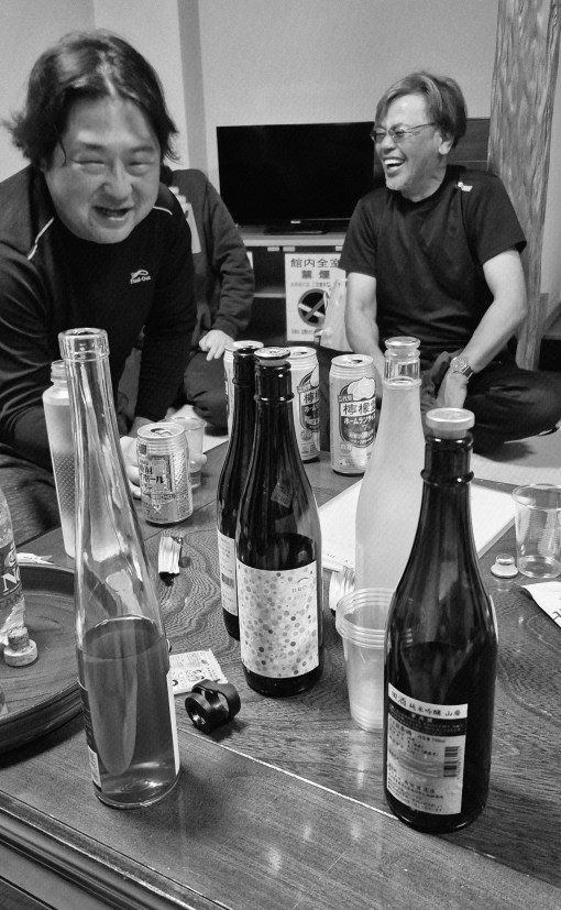 いつもの宿で温泉からの宴会! ガレロス店主の音頭でスタート!