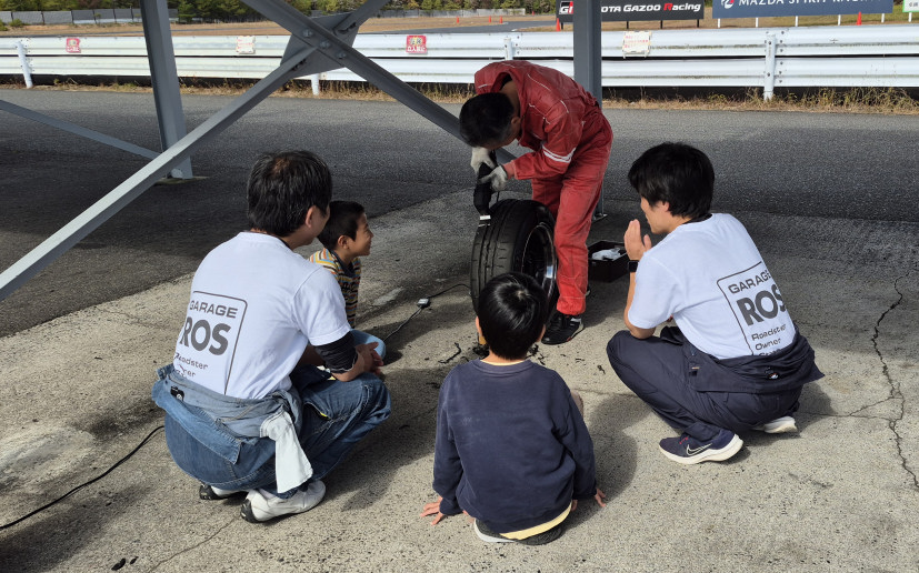 タイヤを掃除しているのはお馴染みタケツさん。ガレロスの一味が見学中(笑)