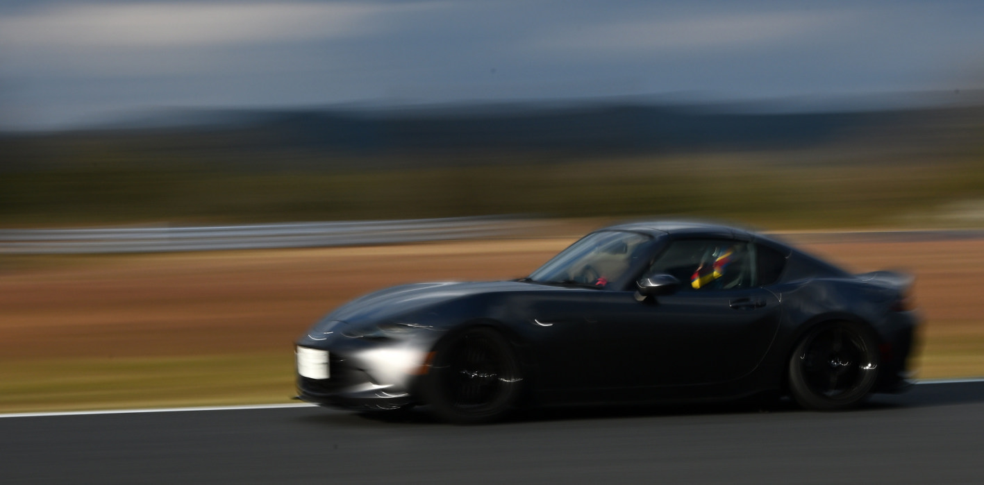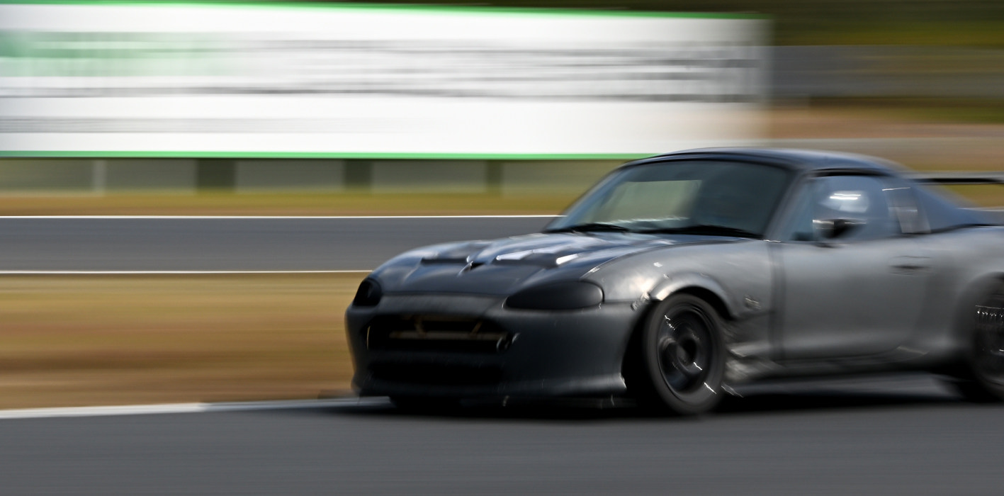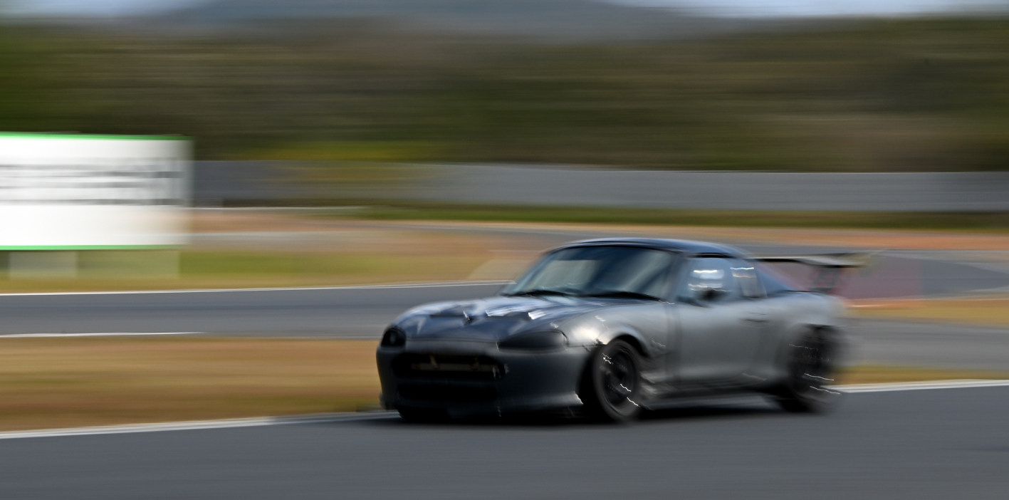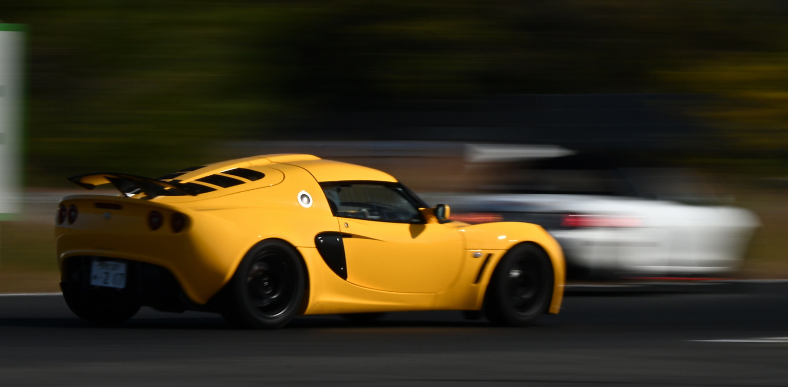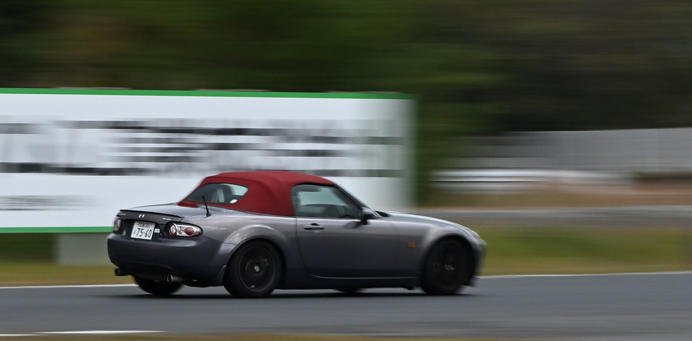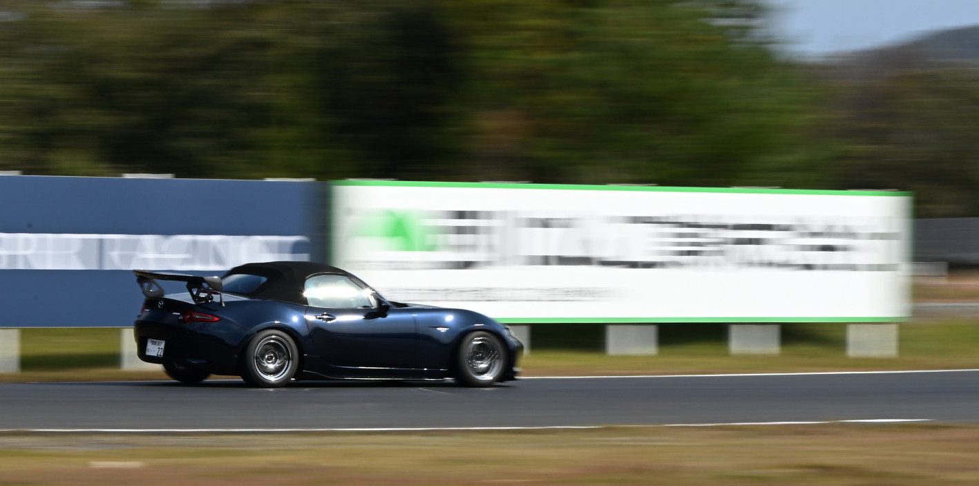1/30秒です。偶然手前のコースを通り過ぎたクルマがありました。 流し撮りならではの面白さかなと。